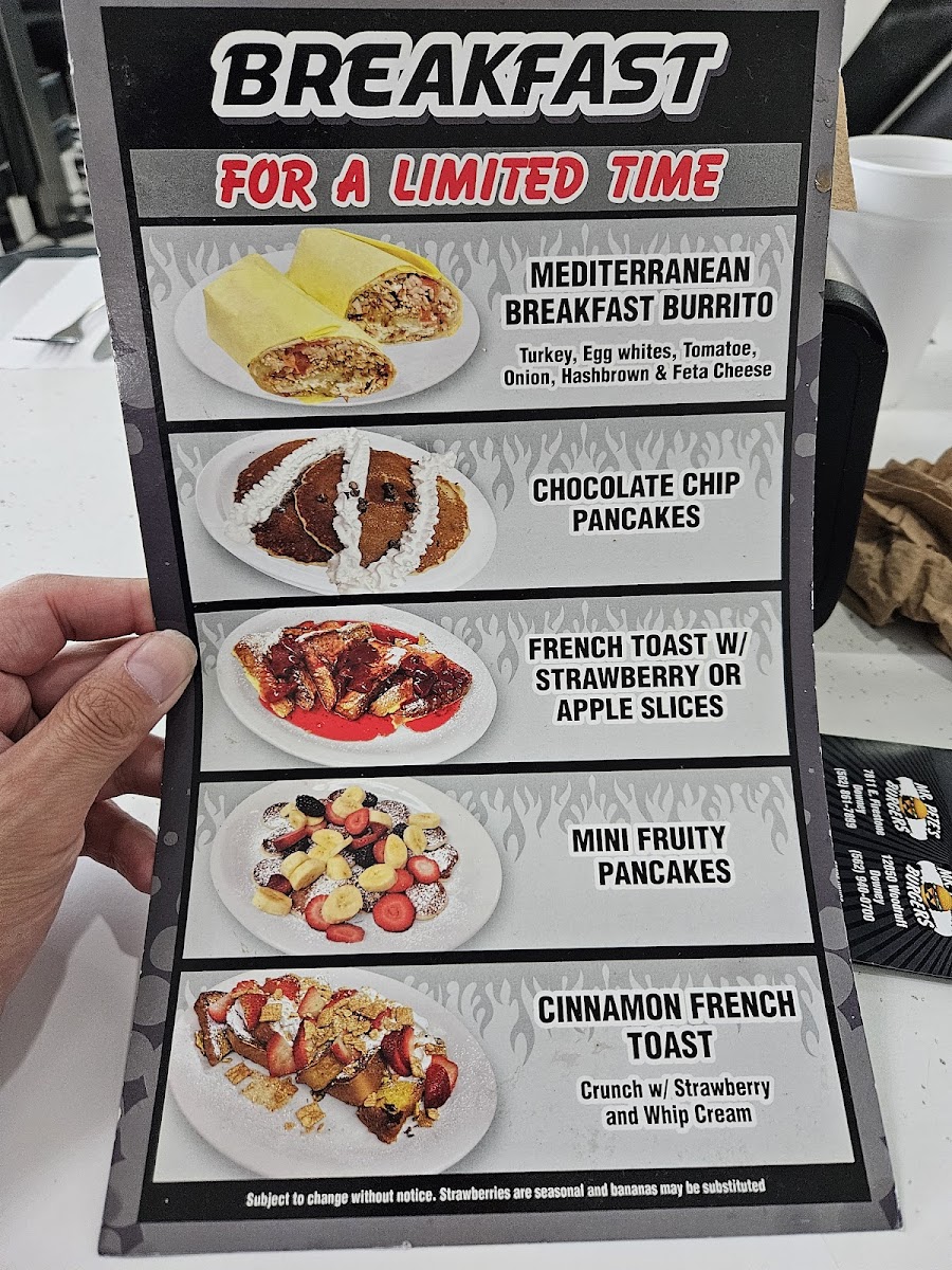 Eggs (2), chicken strips (2) served with either hashbrowns or biscuit and gravy.